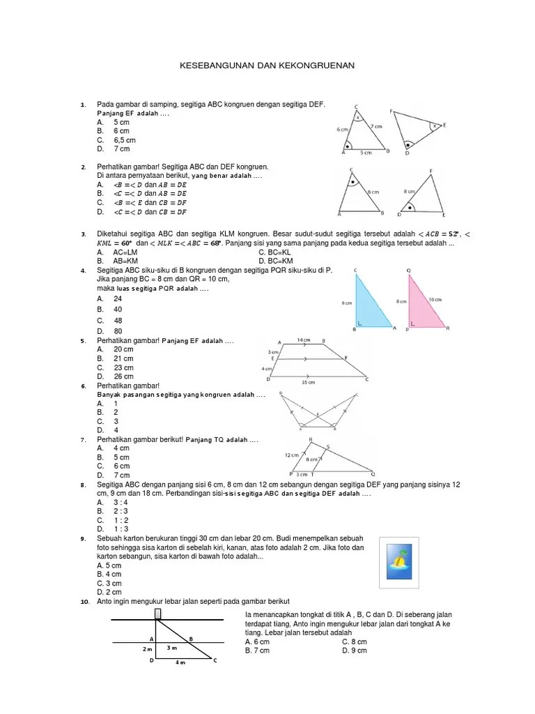 Bab kesebangunan dan kekongruenan bangun datar a kesebangunan bangun datar b kekongruenan bangun datar pdf download gratis · doc 9 smp soal .
